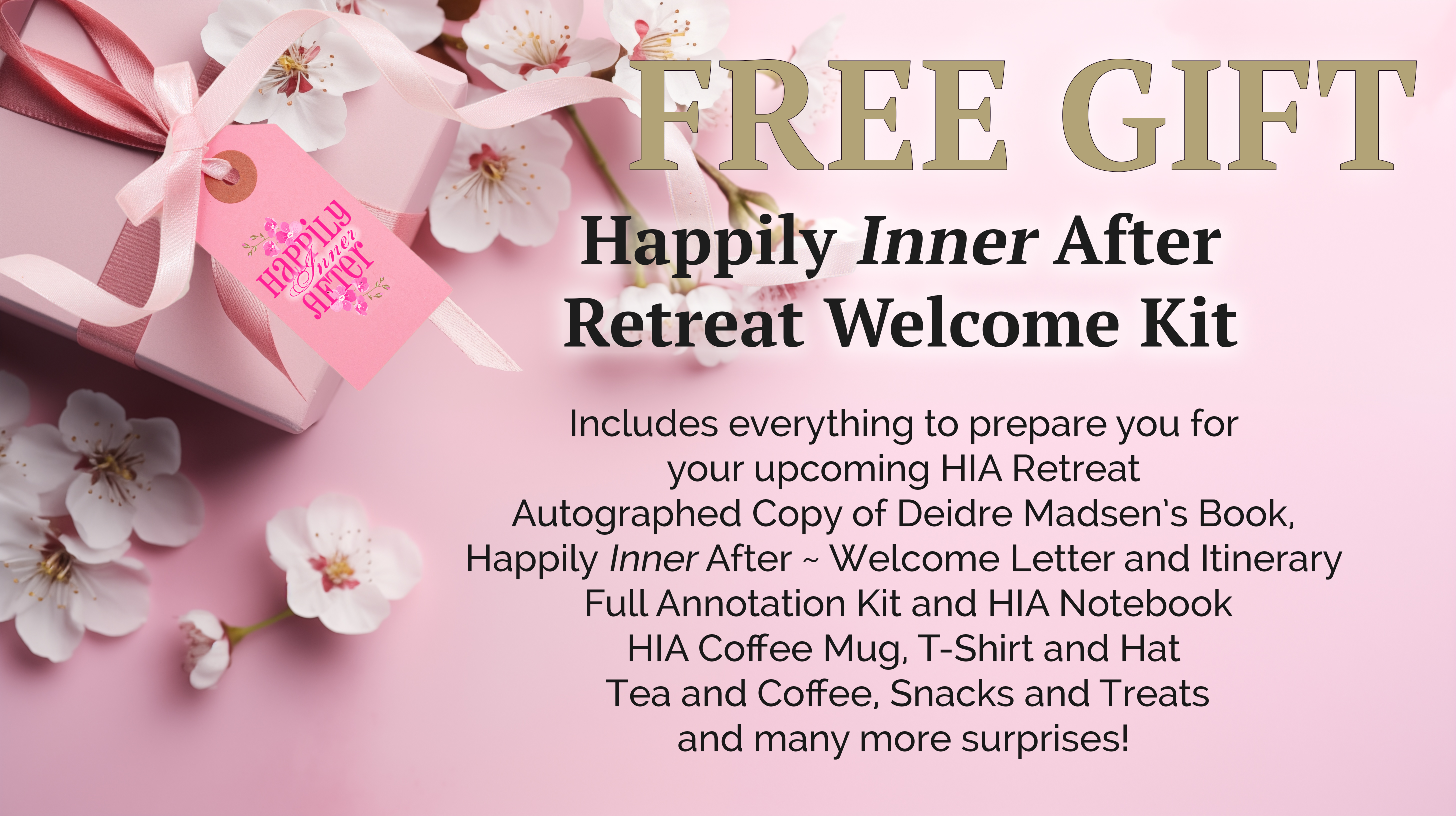 FREE GIFT BONUS: Retreat Welcome Kit with each retreat purchase (directly mailed) Click for Details- Retreat lengths are either 3 or 5 days